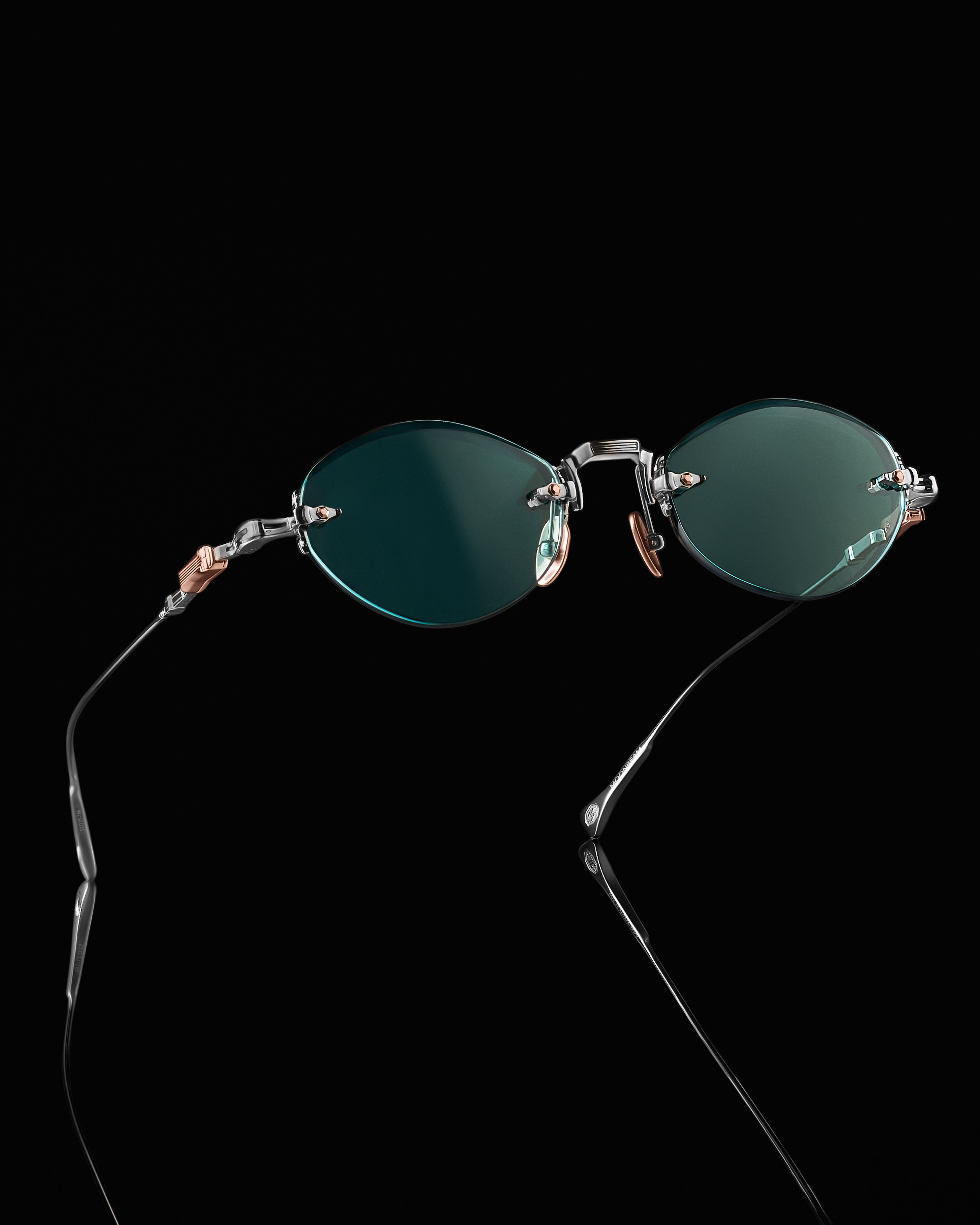 • Custom 4mm Rimless lens featuring a deep upper bevel and finished with both anti-reflective and scratch-resistant coatings.